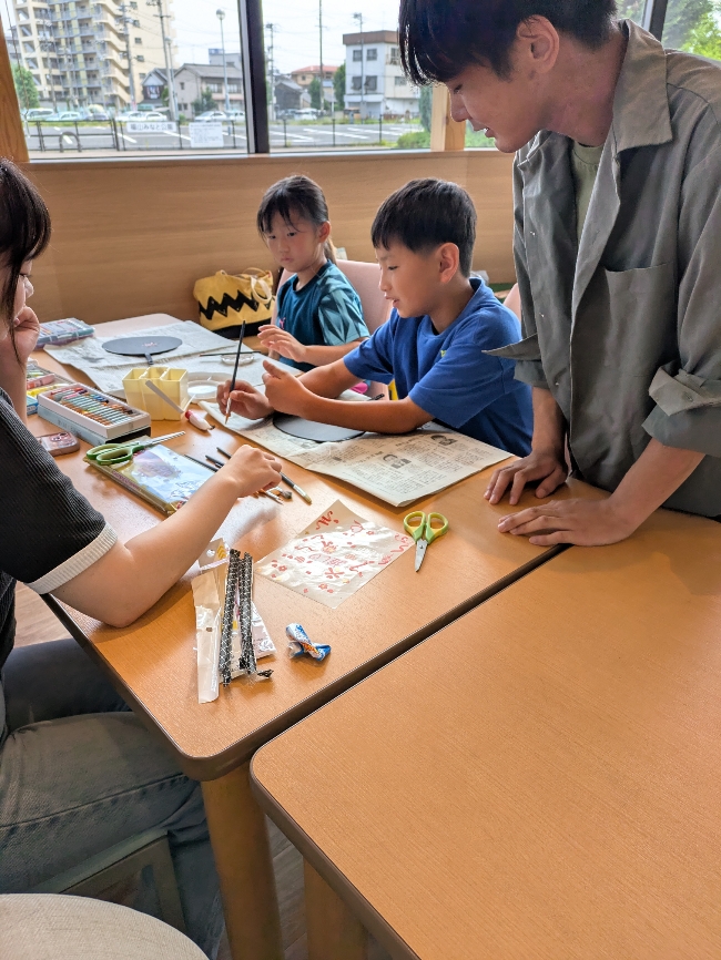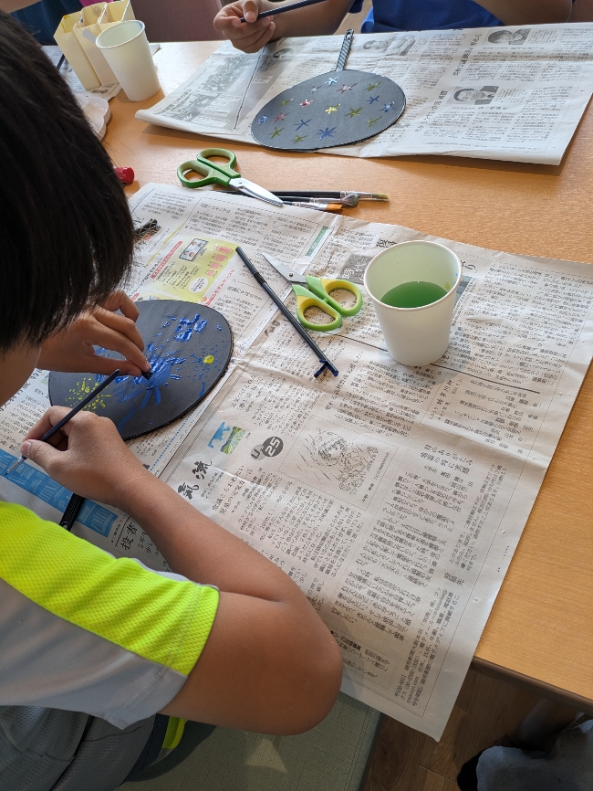 暑い🥵暑い🥵 2025.08.08お知らせ 毎日暑いですね🥵🥵🥵すこしでも涼しくなるように、ハルクルではうちわ作りに挑戦しました。黒いうちわに生えるように、考えながら一生懸命つくりました。15日の花火にもっていくそうです。朝顔の浴衣にばえるかな~ ニュース一覧に戻る